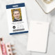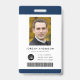 Badge de photo d'employé avec une couleur de bordure supérieure et inférieure modifiable (cliquez sur Personnaliser, sélectionnez le calque "NameTagBadge1.2" et changez la couleur), une couleur de fond arrière modifiable et sur lequel vous pouvez également ajouter votre logo et votre code-barres. Idéal pour diverses professions telles que les consultants, les médecins, les infirmières, les agents immobiliers, etc.