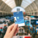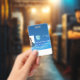 Badge d'identité d'employé horizontal. Conception avec fond bleu et motif de vague lumineuse ondulante. Ajoutez facilement votre propre logo d'entreprise en utilisant notre image de modèle. Id avec photo, nom, nom de l'entreprise et numéro d'identité ou toute autre information que vous souhaitez. Dos avec zone pour les informations au cas où le badge serait perdu. Également disponible en présentation verticale. À tous ceux qui travaillent dans les lignes, MERCI POUR VOTRE SERVICE INCROYABLE !