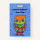 Ce nom ou badge d'identification est un mélange de blues avec un hibou abstrait aux couleurs vives d'orange, vert, bleu et rouge avec des yeux en étoile bleue. Customisez votre nom et vos informations aux modèles.