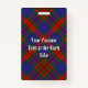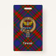Clan Carnegie crête badge entouré d'une sangle et boucle sur l'arrière - plan tartan. Texte personnalisé.