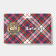 Clan MacFarlane insigne crête entouré d'une sangle et boucle sur l'arrière - plan écossais habillé. Texte personnalisé des deux côtés.