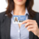 Balise de sécurité ID employé personnalisée. Vous pouvez facilement télécharger votre propre photo, modifier du texte, le nom ou le logo de l'entreprise, le code à barres de sécurité, la photo et les informations personnelles. Vous pouvez choisir la couleur arrière - plan.