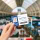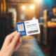 Le badge d'identification des travailleurs essentiels bleu marine dans le paysage est personnalisé avec la photo, le nom, le rôle de l'employé, le logo de l'entreprise, le nom de l'entreprise, le numéro de l'employé et un code-barres pour l'entrée dans les zones réglementées. Informations perdues ou autres informations importantes sur le contraire.