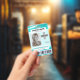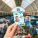 Un design moderne et unique avec un arrière - plan turquoise en marbre vert, photo, code-barres et modèle de logo. Customisez facilement ce badge à votre marque. -conçu avec Zaubershirts-