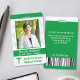Ces badges photo d'identité ont un thème vert et blanc. Ils incluent votre photo d'employé, nom, et titre de travail sur le devant, ainsi que le nom de l'hôpital / entreprise. Vous pouvez également choisir de conserver le caduceus ou de le remplacer par votre logo personnalisé. L'arrière comprend la place pour les informations "si trouvé" (y compris l'adresse et le numéro de téléphone), plus l'espace pour un numéro d'identification et un code à barres. Utilisez le modèle facile à personnaliser, puis utilisez l'outil de conception pour effectuer des modifications plus détaillées (comme ajuster la taille du logo ou du code-barres ou supprimer et réorganiser les éléments). Ce design accrocheur est parfait pour une infirmière, une infirmière praticienne, un médecin ou toute personne dans le domaine médical.