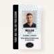 badge d'identification d'employé entièrement personnalisable avec un motif arrière - plan géométrique. Personnalisez avec votre photo d'identité, votre numéro d'employé, le titre de l'emploi, le nom de l'entreprise, le logo et la date d'émission/expiration. Au verso, vous pouvez ajouter votre code à barres/code QR et des informations supplémentaires. Ce modèle élégant est idéal pour divers lieux de travail et professions tels que gardien de sécurité privé, sécurité des magasins, garde du corps personnel, portier officiel, sécurité des événements, professionnel de l'entreprise, employé de détail, personnel médical, laissez-passer de petite entreprise, étiquettes de nom de conférence et plus encore. Couleurs imprimées : bleu, or, noir et blanc. Magasinez la collection pour plus d'insignes et étiquettes à vendre en ligne, conçu pour l'industrie des services de sécurité.
