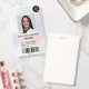 Un badge d'identification photo d'infirmière en nacre de perle holographique pastel moderne et professionnel avec logo et code-barres.
