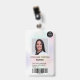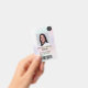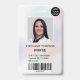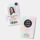 Un badge d'identification photo holographique moderne et professionnel avec logo et code barre.