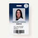 Un badge d'identification de photo d'infirmière ombré bleu foncé moderne et professionnel éditable avec logo et code-barres.