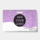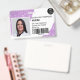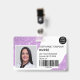 Une parties scintillant violette moderne et professionnelle brille l'insigne d'identification photo de l'infirmière avec logo et code-barres disposition horizontale.