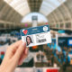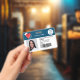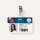 Un badge d'identification photo d'infirmière moderne et professionnel élégant avec logo et code-barre disposition horizontale avec coeur médical rouge modifiable, stéthoscope.