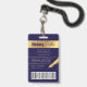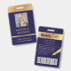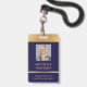 badge photo moderne en bleu marine et or avec espace pour une photo de profil personnalisée, titre de poste, coordonnées, services et code barre. Cet élégant badge de nom d'employé présente des effets arrière - plan bleu foncé et faux or avec texte entièrement modifiable et une photo.