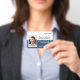 Le badge d'entrée bleu foncé et vert olive avec le texte vertical en gras est idéal pour la clairance spécifique au département. Téléchargez facilement plusieurs logos et une photo d'employé. Cela peut être accroché sur une longe correspondante qui détient également une carte de clé de l'entreprise. Ce badge d'entreprise est polyvalent pour les lanières d'entreprise vertes, blanches et grises. Parfait pour l'ingénierie, les soins de santé ou les installations d'application de la loi où l'identification du personnel est importante. Parfait pour les bâtiments gouvernementaux où les employés ont des autorisations différentes. Versatile pour gris bleuté, gris bleu, gris ardoise, vert chasseur, vert forêt couleurs compagnie.