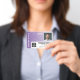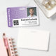 Version horizontale avec un Motif tribal violet et blanc Un design d'entreprise moderne qui met en valeur le logo de votre bureau et le nom de votre employé. Ce design branché de petite entreprise comprend également un numéro d'identification d'insigne, la date d'expiration et une grande zone pour infirmière, essentielle ou tout poste. RETOUR : Vous pouvez ajouter un code à barres de numérisation au verso et un endroit pour ajouter des informations si le badge est perdu. Vous pouvez également modifier la couleur de l'arrière - plan. Cliquez sur le bouton personnaliser et choisissez une couleur arrière - plan pour l'avant et l'arrière.