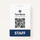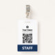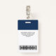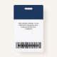 Personnalisez facilement ces badges de nom d'entreprise sans photo, avec le code Qr lisible (ça marche toujours!) et le code Bar et le logo de grande entreprise. Cette société id maker a un design de marque de nom d'entreprise simple en bleu marine et blanc entièrement personnalisable en tailles avant et arrière, sans-serif polices de base et moderne et un look professionnel et clair, parfait pour les employés de petite entreprise, patron, invités. Ces fournitures de badges d'identification d'entreprise sont disponibles avec cordon, clip métallique ou avec rétractable. Profitez de l'excellent service d'impression de badge de Zazzle! Pas de commande minimum, et plus vous achetez, plus vous économisez. Des rabais en vrac sont disponibles avec plusieurs commandes, pour différents employés aussi!