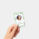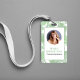 Cette conception comprend un badge de photo d'employé, parfait pour toute entreprise professionnelle, avec des feuilles de palmier botaniques et un code-barres QR code, avec nom et titre, Il est parfait pour les entreprises, la vente au détail moderne ou les entreprises, les fournitures de bureau idéales, et également idéal pour les salons professionnels et les conventions