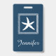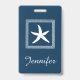 Conception à thème aquatique avec décoration d'étoiles de mer en carrés rayés sur arrière - plan bleu avec nom