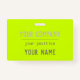 Jaune fluorescent -#ccff00 - couleur solide arrière - plan et lettrage gras en gris .Design lumineux et tendance par Alma Wad .Personnalisez maintenant ce badge plastique horizontal !