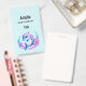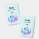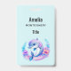 Insigne de nom avec une adorable illustration. Un dauphin bleu et violet entouré de jolis plantes sous-marins colorés.
