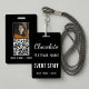 Custom Chocolate Festival Photo QR Code Staff Badge with a sleek black and white design. Ideal for festival staff, volunteers, and crew who need clear identification at chocolate events, food festivals, and trade shows. Personalized for professional event use.