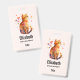 Balise de nom avec une adorable illustration aquarelle. Un chat tabby orange qui a l'air amical et heureux de voir les coeurs tourbillonner autour.