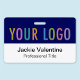 Personnalisez notre badge nominatif professionnel en PVC avec le logo de votre entreprise, le nom de l'employé, le titre du poste ou tout autre texte personnalisé. Il est fabriqué en plastique PVC durable. Conçu en bleu et d'autres couleurs avec un design moderne minimaliste par MISOOK. Toutes les couleurs sont personnalisables. Disponible avec un cordon, un clip métallique ou un enrouleur rétractable. Les dimensions sont de 8,6 cm x 5,4 cm. Aucune quantité minimum de commande et aucun frais de configuration.