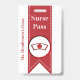 Passeport de bibliothèque scolaire amusant réalisé en blanc avec un ruban rouge, descendant au milieu, avec des graphiques représentant un symbole d'infirmière. Personnalisez le texte personnalisé pour qu'il soit lu comme vous le souhaitez.