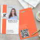 Badge de photo d'identité orange avec code QR