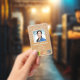 Téléchargez facilement votre propre logo, photo, QR code ou code-barres. Démarquez-vous de la foule avec des paillettes amusantes et délicieuses sur vos badges d'identification de personnel. Le texte supplémentaire indique "Entièrement vacciné". Le modèle éditable comprend le nom, le poste, la qualification, la date d'émission et de validité. Badge de photo ID médicale avec QR code et code-barres en paillettes dorées. Consultez notre collection pour plus d'idées de badges de photo ID.