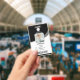 Badge Design noir moderne avec intégration de code-barre