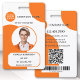 Carte d'identité photo avec photo personnalisée et logo sur un motif rétro orange coloré. La zone de texte inférieure sur le devant affiche une forme rectangulaire, que vous pouvez mettre à l'échelle dans l'éditeur avancé. À l'arrière, vous pouvez ajouter un code à barres personnalisé ou un code QR et des textes supplémentaires (ou supprimer les modèles). Idéal pour créer une présence captivante.