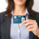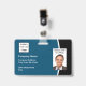 Badges d'identification pour employés conçus de manière professionnelle et abordables avec un modèle de logo de société et un modèle de photo que vous pouvez personnaliser en ligne. Obtenez-les en gros ou commandez-les un par un selon vos besoins pour les nouveaux employés sans frais supplémentaires pour une impression unique en couleur sur les deux faces.