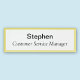 Personnalisez notre étiquette de nom magnétique acrylique haut de gamme avec le nom de l'employé, le titre de l'emploi ou tout autre texte personnalisé. Il dispose d'une attache magnétique dos qui est une bonne alternative à une épingle pour les tissus délicats et les vêtements d'affaires fins (ne pas utiliser avec des pacemakers). Il est résistant aux rayures, étanche, résistant aux UV et imprimé en couleur AcryliPrint® HD complète. Vous pouvez customiser la couleur de la bordure ou la rendre claire sans bordure. Il s'agit d'une balise de nom rectangle avec des dimensions 3 pouces x 1 pouce. Pas de quantité minimale de commande et pas de frais de configuration.