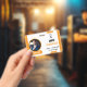 Badge d'identification bleu avec photo de l'employé et logo d'entreprise personnalisé