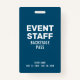 Badge d'identité du personnel de l'événement Blue Backstage Pass. Un badge personnalisé avec un modèle modifiable pour les événements spéciaux. Peut être utilisé par les employés comme laissez-passer d'accès ou laissez-passer. Consultez le reste de la collection pour d'autres variantes de conception.