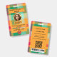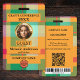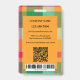 Badge d'identification photo avec votre photo et logo personnalisés sur un motif à carreaux colorés. Au verso, vous pouvez ajouter un code-barres et/ou un code QR personnalisé ainsi que des textes supplémentaires (ou supprimer les modèles). Les formes de rectangle (et d'ovale) peuvent être ajustées dans l'éditeur avancé. Vous pouvez également modifier les couleurs pour faire une différence entre le personnel et les invités.