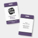 Ce badge de conférence élégant est parfait pour toute entreprise cherchant à donner à son personnel une apparence individualisée avec un texte et des couleurs personnalisés. Le design présente un fond violet, noir et blanc qui peut être facilement personnalisé, aussi !