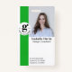 Un badge d'identification d'employé vert élégant et professionnel avec une grande photo personnalisable, nom, titre de poste, logo de l'entreprise et code QR unique. Inclut le numéro d'identification imprimé et les informations de retour au verso. Idéal pour les consultants, les équipes, le personnel d'affaires ou les événements d'entreprise.