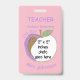 Un badge rose, double face pour les enseignants avec une pomme. A L'AVANT : ajouter le titre (position : enseignant, assistant enseignant, bibliothécaire, directeur, etc.). Ajoutez le nom de l'école et l'année scolaire, ce badge sera valide. remplacer l'image par une photo de 2 po x 2 po de l'employé de l'école. Sous la pomme, ajoutez le nom. Remplissez LE RETOUR avec le texte supplémentaire dont vous avez besoin. Il s'agit également d'un espace blanc prévu pour une signature ou un code à barres.