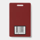 Badge d'identification d'employé classique dans un design traditionnel. Fond bordeaux. Tous les éléments sont modifiables ou amovibles. Les éléments comprennent : photo de l'employé, nom de l'employé, nom de l'entreprise, département de l'employé. Le verso du design comporte un scan de code-barres de sécurité. Fente en haut pour un cordon.