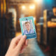 Carte d'identification personnalisable bleu et blanc pour les employés. Le badge d'identification professionnel peut être entièrement personnalisé, y compris la photo, le nom, le titre de poste sur le devant ainsi que tout le texte au dos.