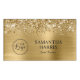La parties scintillant en or brillant faux filé se met en surbrillance sur le bord supérieur sur une fausse feuille métallique jaune doré. Ajoutez un nom d'employé, un titre ou un autre texte ainsi qu'un logo d'entreprise. La parties scintillant et la feuille sont créées avec des graphiques numériques qui s'impriment comme votre photo sur votre étiquette de nom.