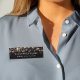 Chic noir nametag présente votre nom et titre ou entreprise en lettres blanches modernes, accentué par des torsades de fils d'or croisées avec un effet bokeh flou. Un beau choix pour les wedding planners, les professionnels de l'événementiel, les employés du salon et plus encore.