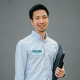 Badge D'identification Motif Feuille bilingue bleu turquoise
