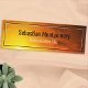 This professional magnetic back name feesta professional name in black and title in white over a sunset orange artwork background. It is framed by a pinstriped white and black border. Personalize the text fields or click customize to select a font style, size, and color you prefer
