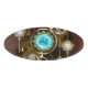 Turquoise lenses with antique watch with brass gears and golden keys on rusty, brown background. Steampunk style.