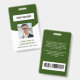 Un badge d'identification photo minimaliste et moderne pour les professionnels de l'entreprise/employés d'affaires avec un thème vert et blanc de la forêt. Customisez avec le logo de votre entreprise et la photo de l'employé. Modifiez la couleur de l'arrière - plan ou laissez-le tel quel, et ajoutez un code à barres et d'autres informations sur le dos si nécessaire. Veuillez consulter les autres options de badge employé/entreprise dans la collection de badges photo personnalisées ID employé.