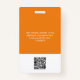 Personnalisez facilement ce badge personnalisé de nom d'employé avec Photo, Scan Qr Bar Code et logo d'entreprise. Un design d'entreprise simple dans les couleurs orange et blanc entièrement personnalisable dans les tailles avant et arrière, sans-serif polices de base et moderne et un look professionnel et clair. Disponible avec cordon, clip métallique ou avec rétractable. Pas de commande minimum.