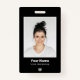 Personnalisez facilement ce badge personnalisé de nom d'employé avec Photo, Scan Qr Bar Code et logo d'entreprise. Un design d'entreprise simple en noir et blanc entièrement personnalisable en tailles avant et arrière, sans-serif polices de base et moderne et un look professionnel et clair. Disponible avec cordon, clip métallique ou avec rétractable. Pas de commande minimum.