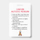 Ce produit fait chacun savoir que votre enfant, parent, ou ami a l'autisme au cas où ils se perdraient et ne peuvent pas parler pour eux-mêmes. L'information de contact de secours peut être ajoutée d'un côté et il y a une explication des comportements autistes communs de l'autre côté.